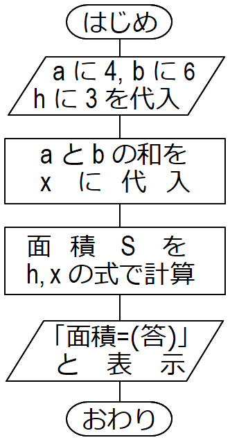 問10. 台形の面積を求めるプログラムをフローチャートを参考に問10. 作成しなさい。